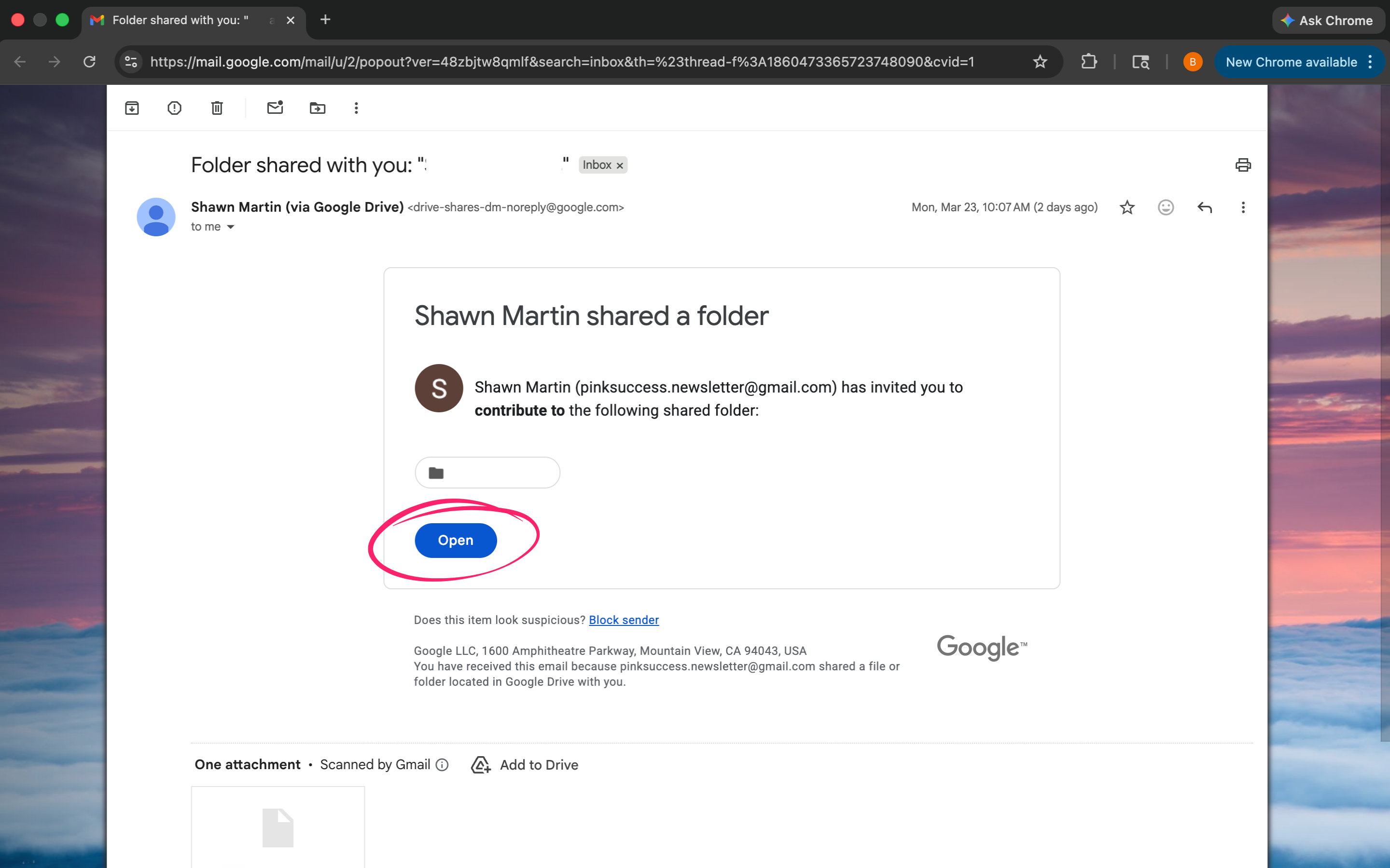 Click the “Open” or “View Folder” button in the email.
